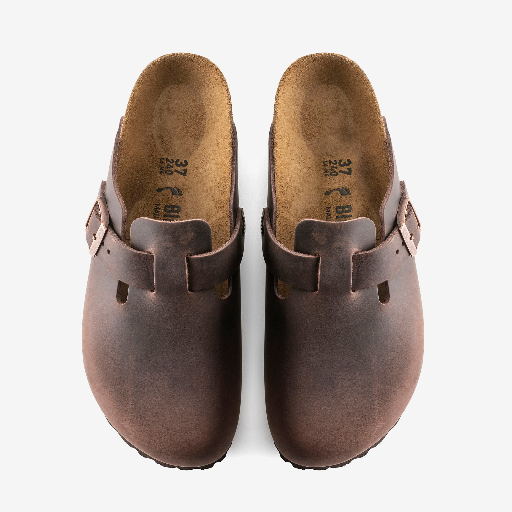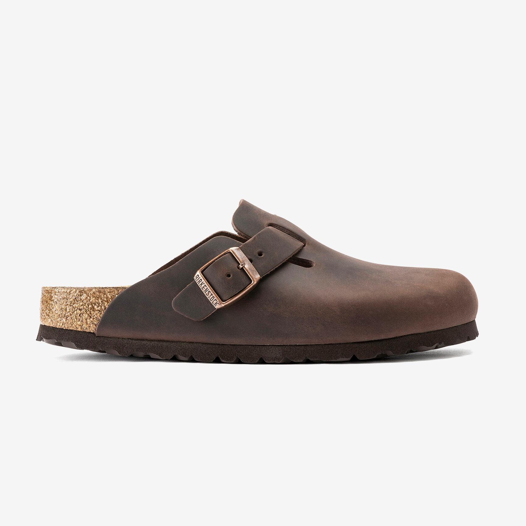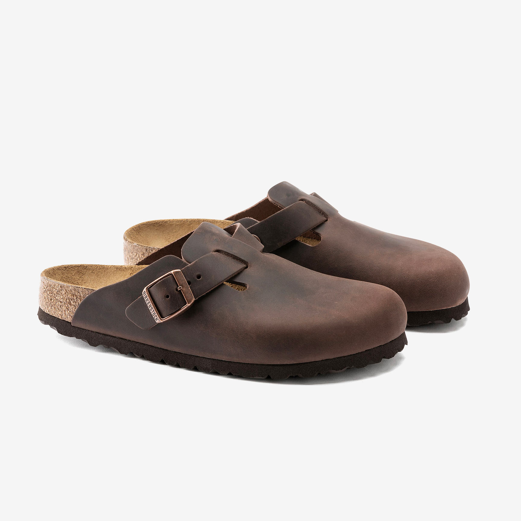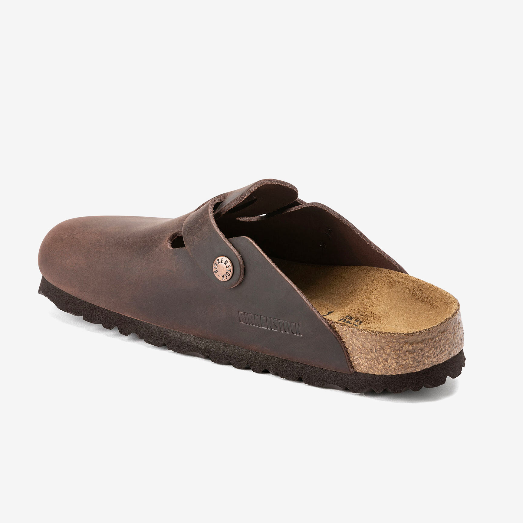 Die Birkenstock Boston Natural Leather Oiled Habana Clogs verfügen über extra dickes, geöltes Nubukleder mit einer offenen Kantenverarbeitung.