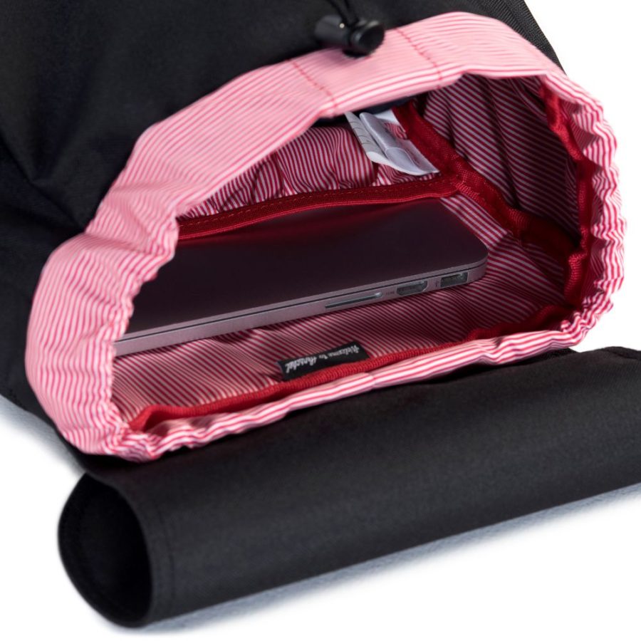 Schwarzer Einkammer-Rucksack von Herschel Supply mit einer Fronttasche und einem Herschel Logo