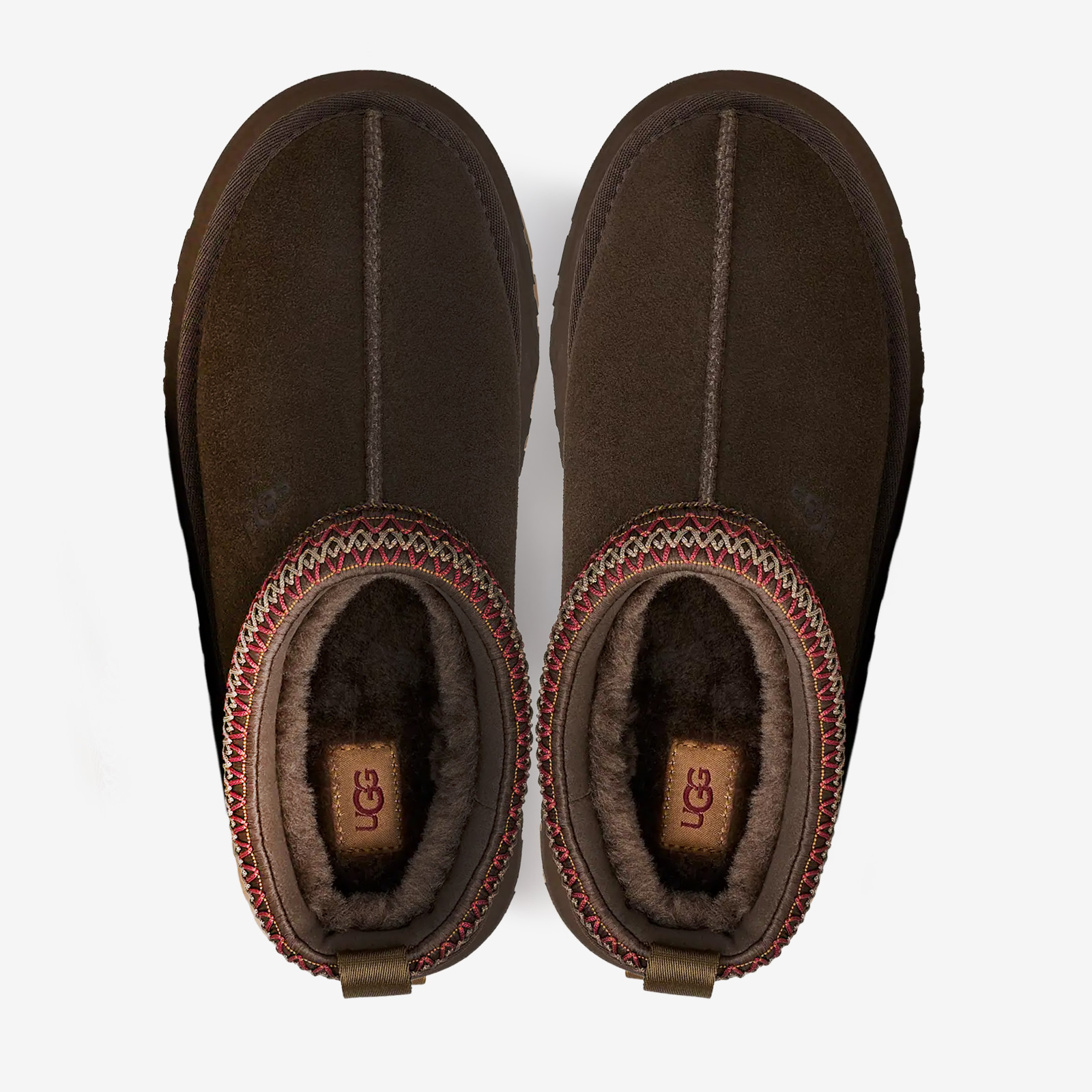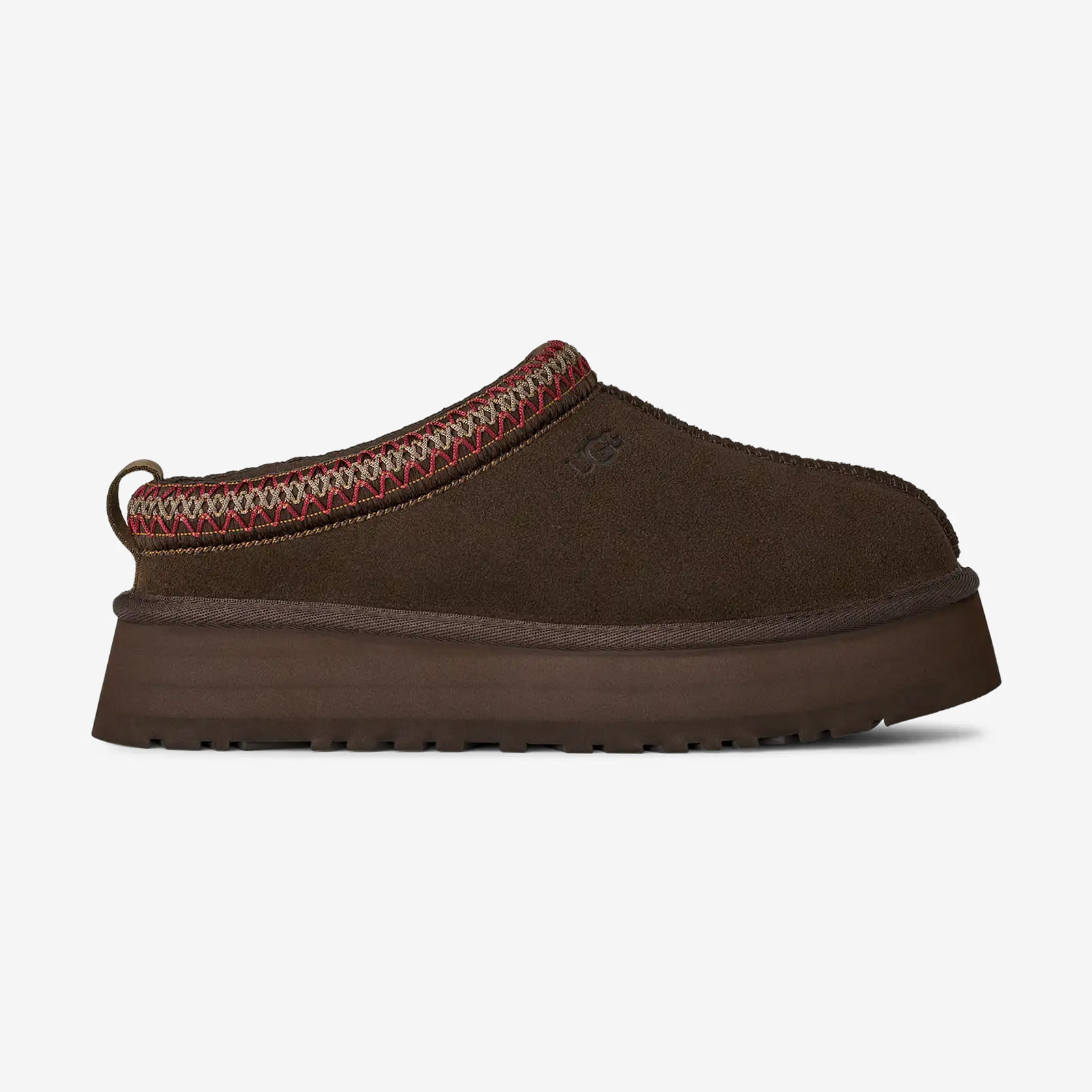 Damen UGG Donna Tazz II – Hausschuhe aus weichem Veloursleder mit flauschigem Lammfellfutter für gemütlichen Komfort zu Hause oder beim lockeren Outdoor-Look. Die EVA-Außensohle aus Zuckerrohr verfügt über eine fortschrittliche Rocker-Silhouette für einen natürlichen Bewegungsablauf, während die leichte Plateausohle (4,5 cm) modernen Style verleiht. UGGbraid-Detail und Zuglasche hinten runden das Design ab. Hergestellt aus echtem Schaf- oder Lammfell aus Australien, Irland, UK oder den USA.